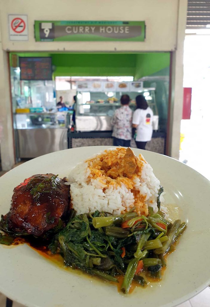 Curry House (Stall 9): If you’re looking for a traditional masak kampung meal, head over to Curry House. Their white rice with ayam masak kicap and sayur kangkung is just perfect.